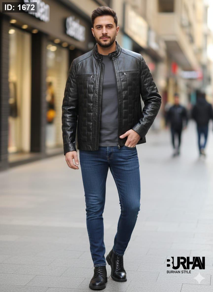 جاكيت جلد طبيعي رجالي مكفول سنة