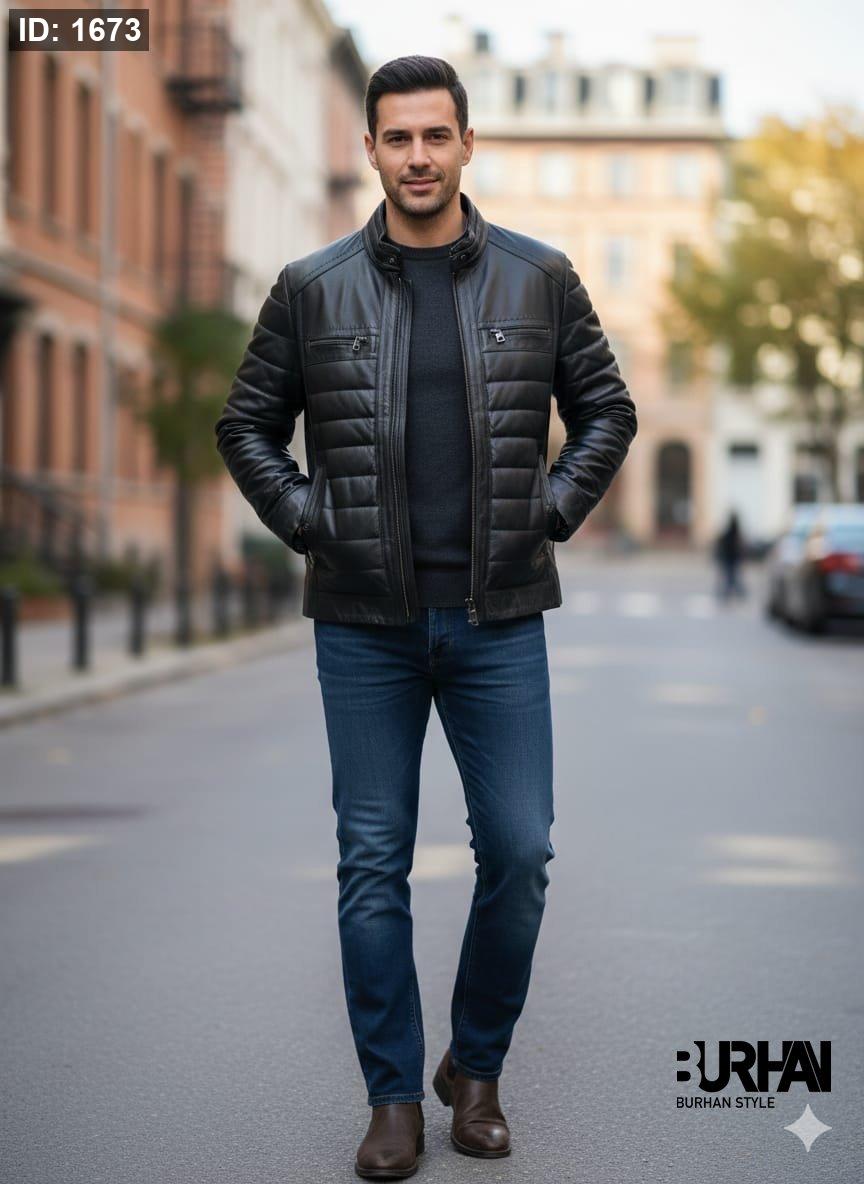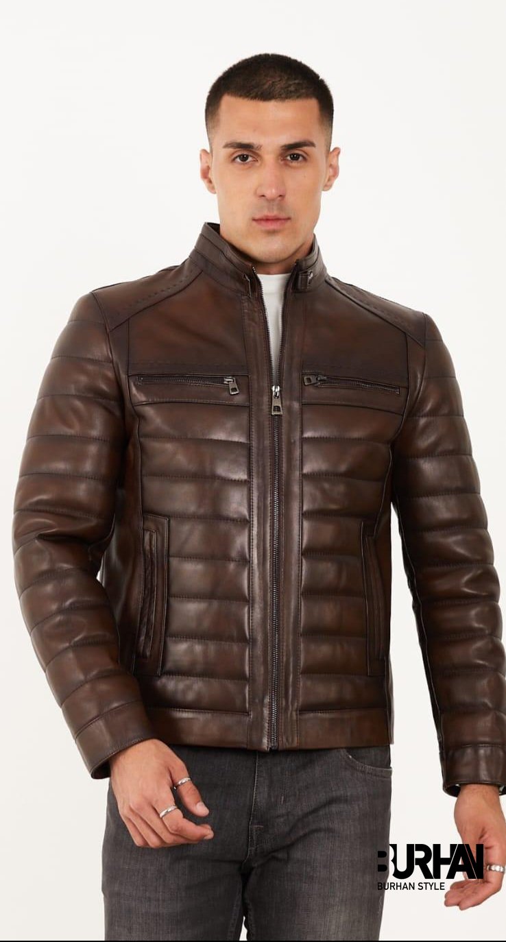 جاكيت جلد طبيعي رجالي مكفول سنة