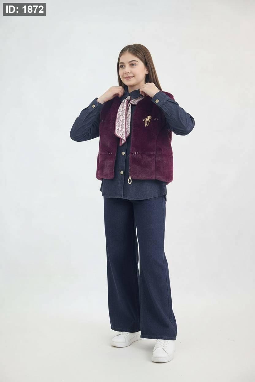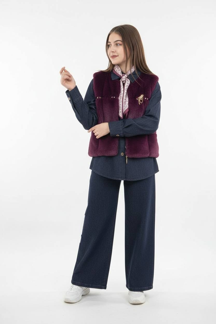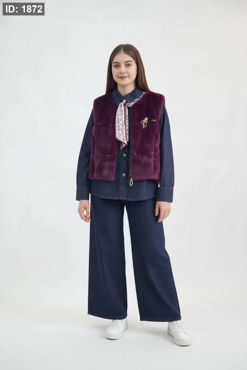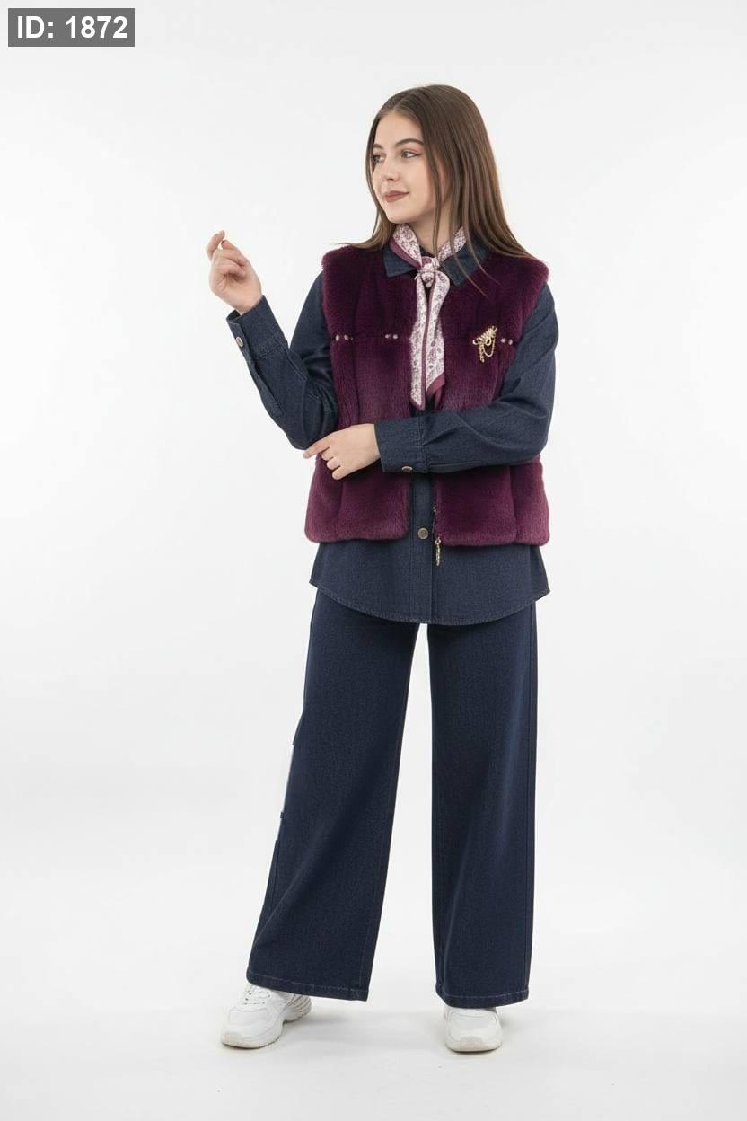 يتكون من قميص ، فست فرو ، سكارف، بنطلون