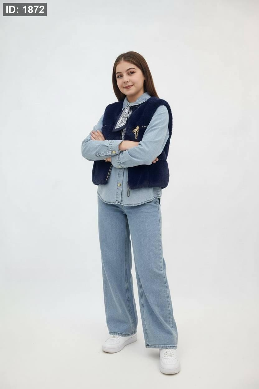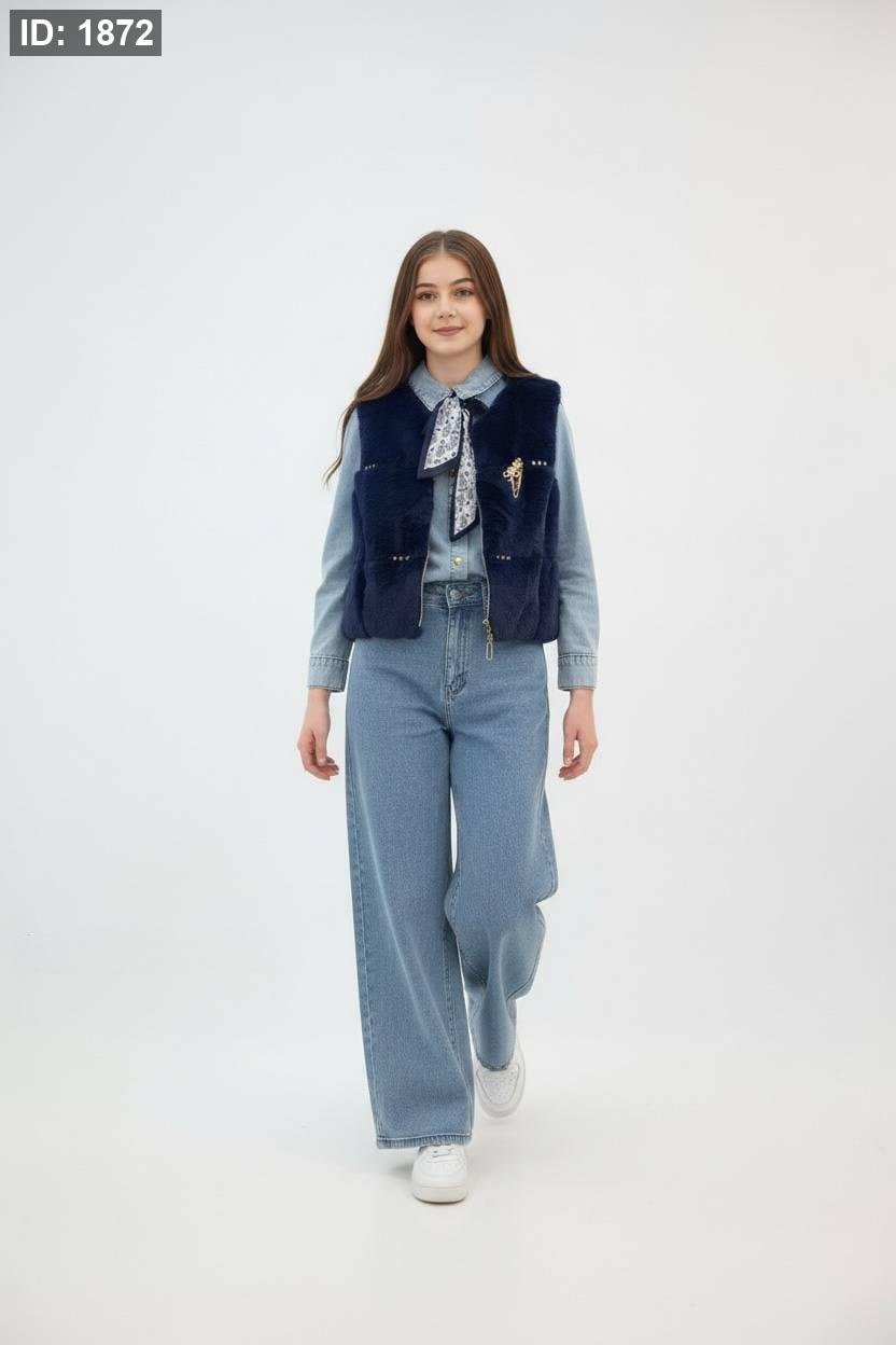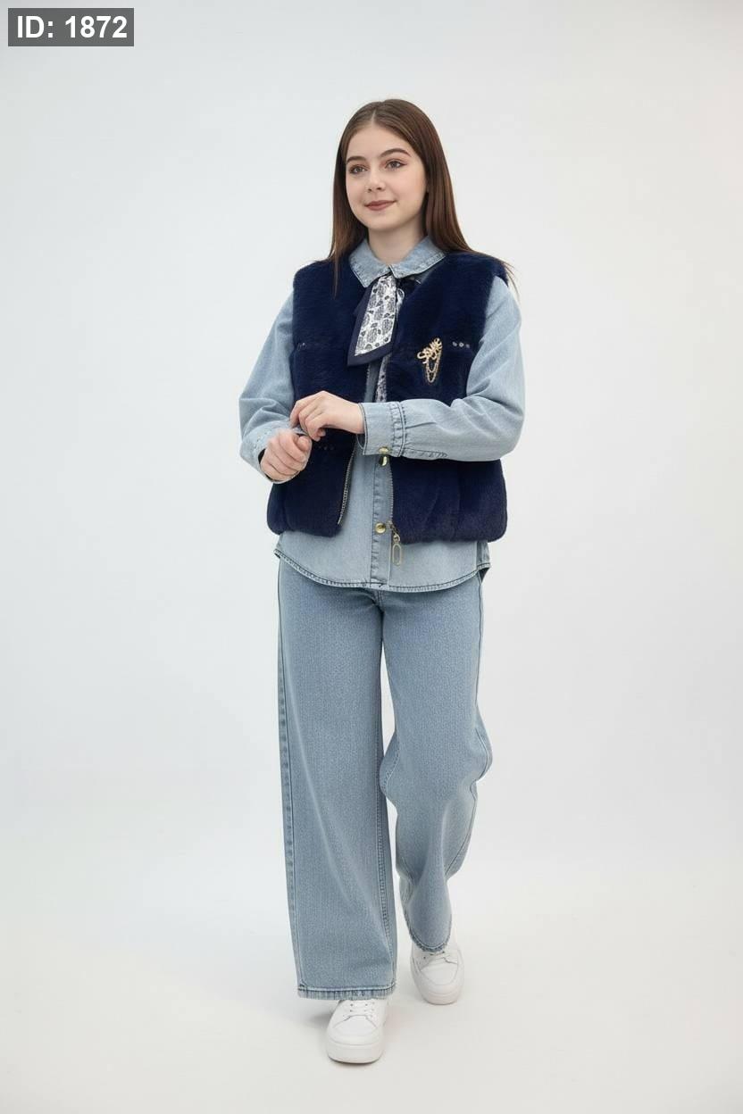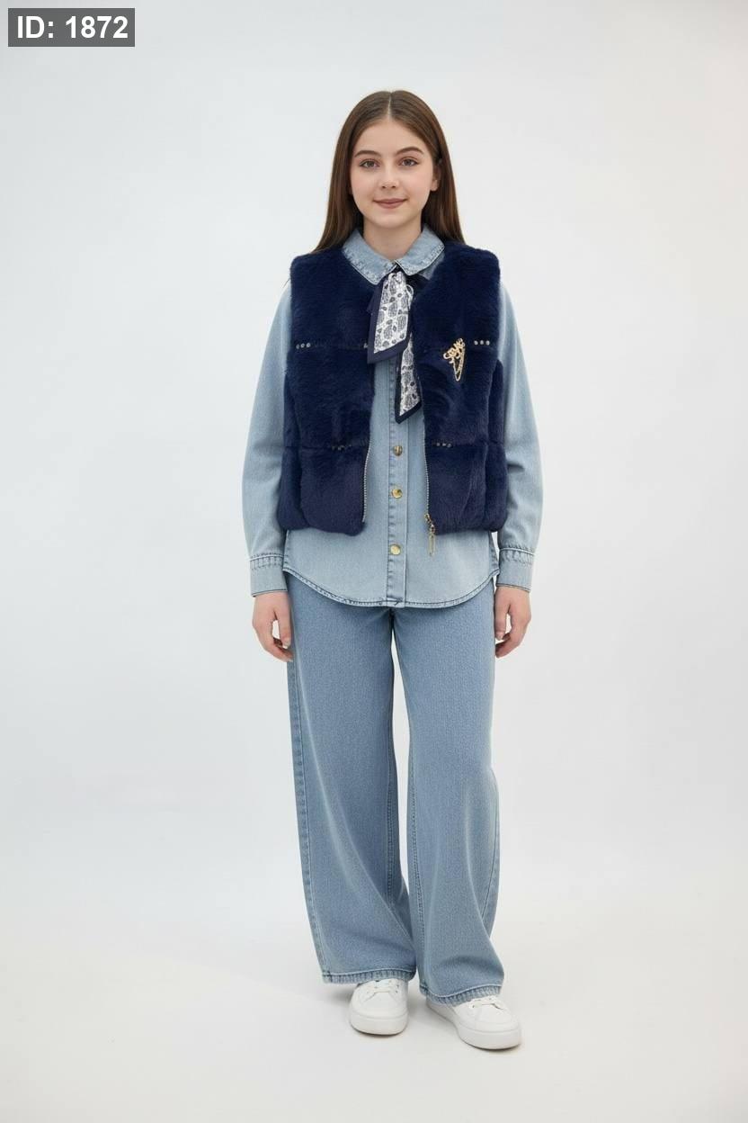 يتكون من قميص ، فست فرو ، سكارف، بنطلون