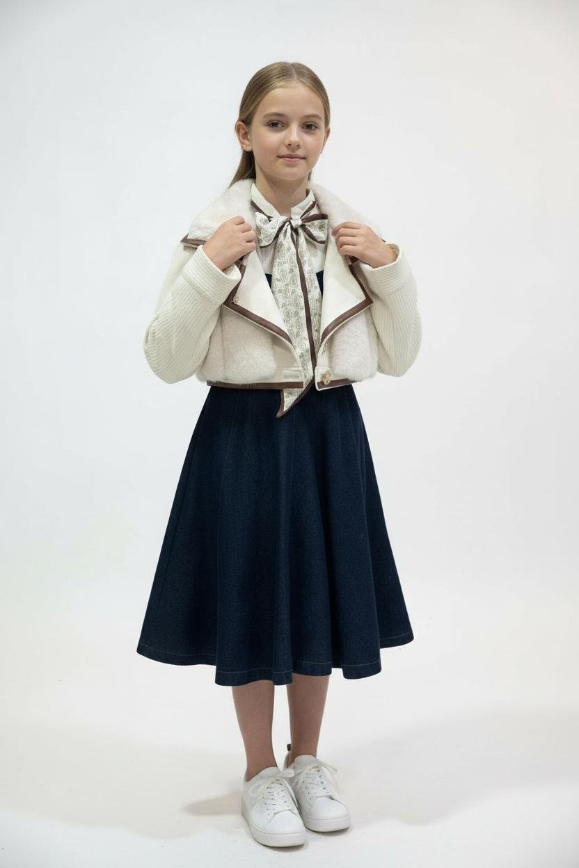 يتكون من 4 قطع:فستان ،قميص ، سكارف، فست