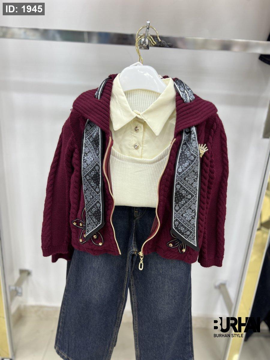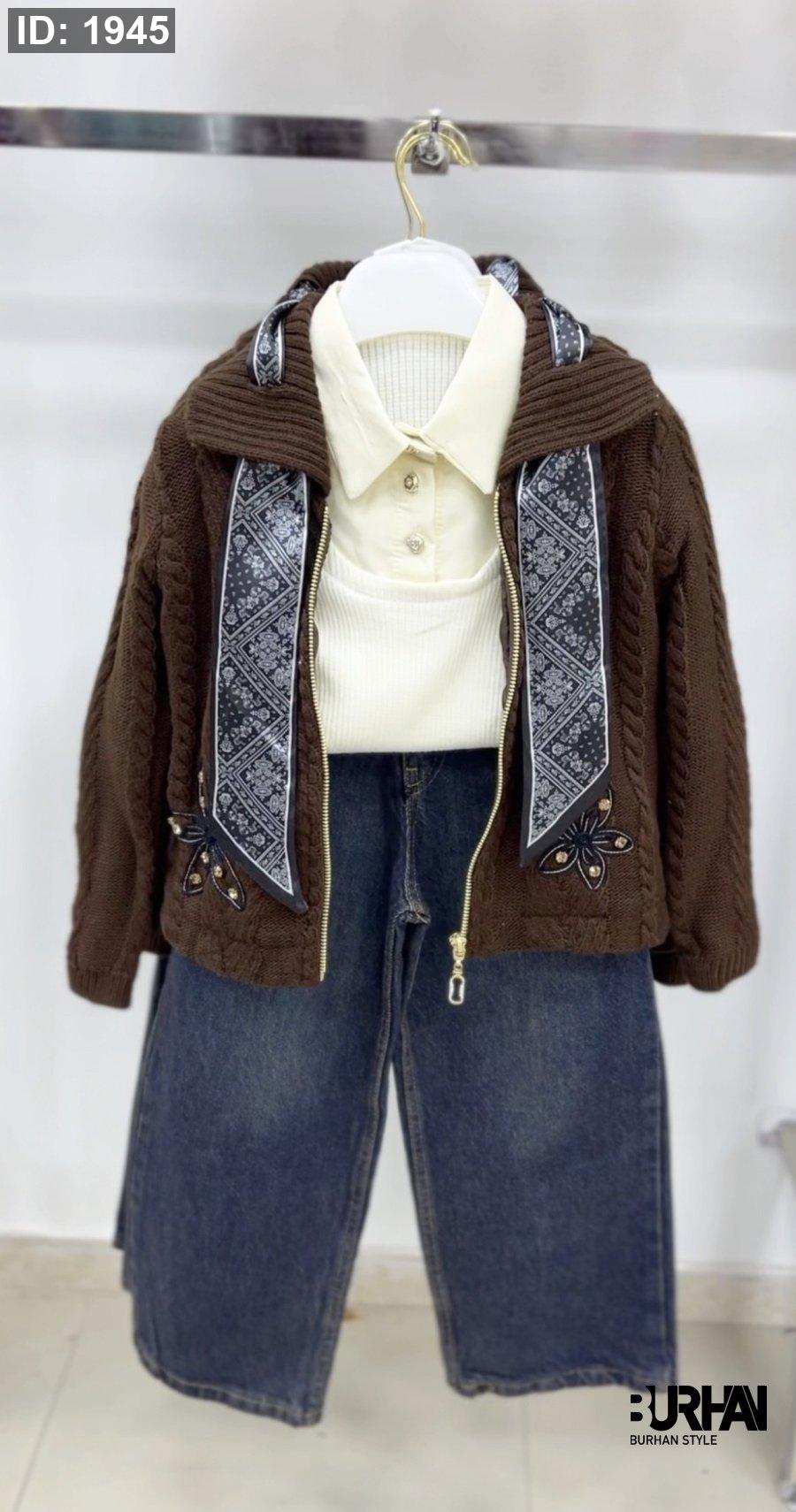 يتكون من: بلوزة ،جاكيت،سكارف ،بنطلون