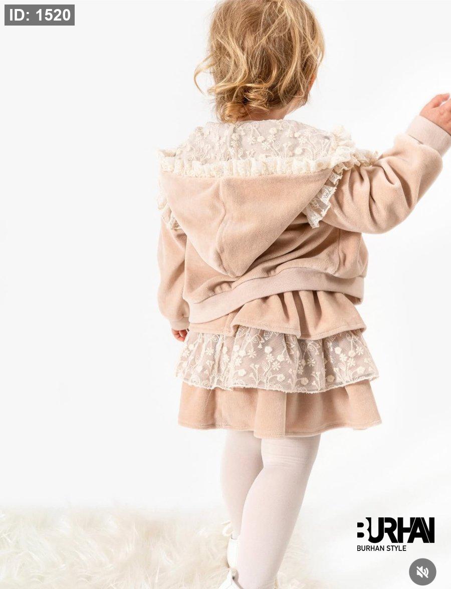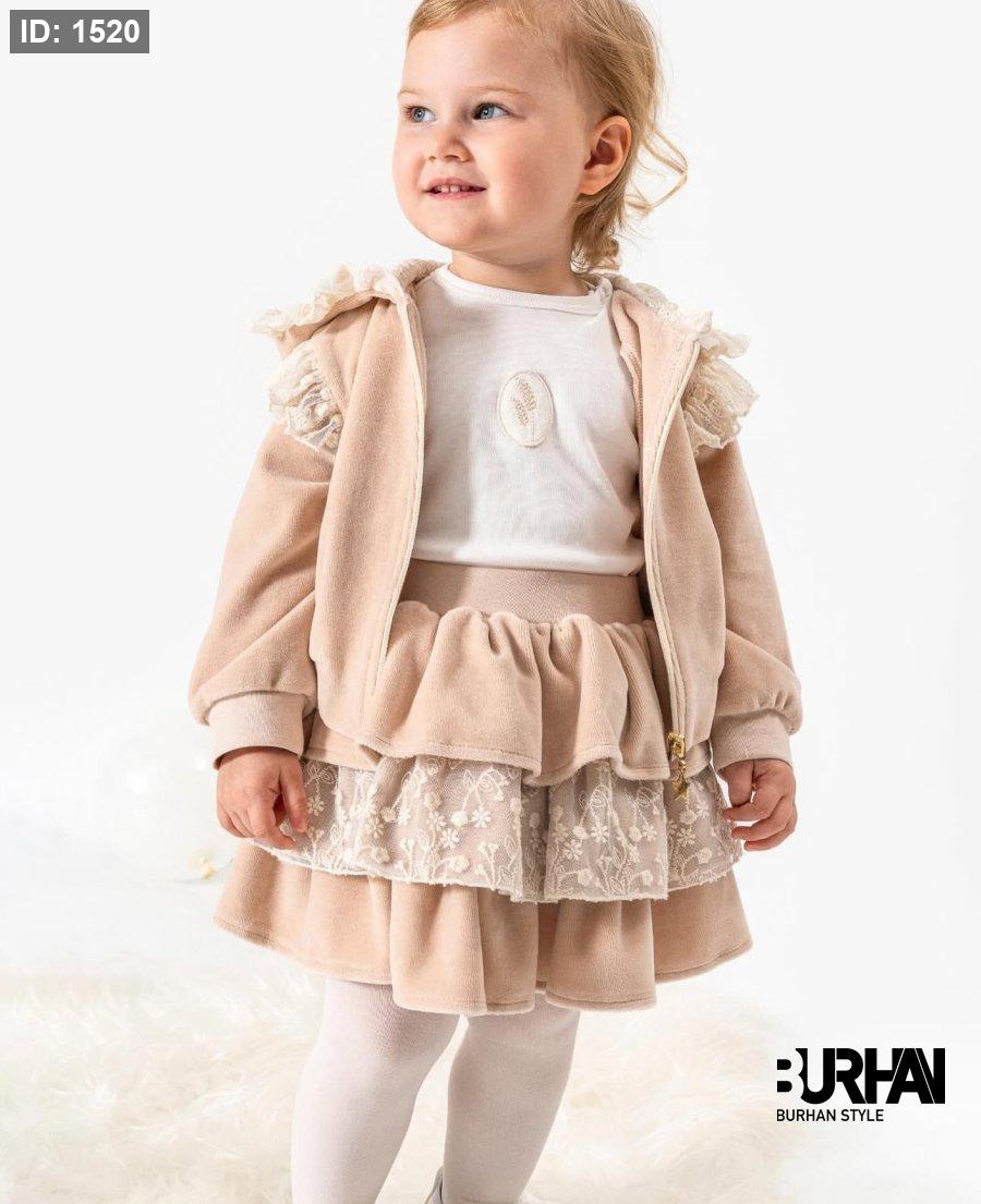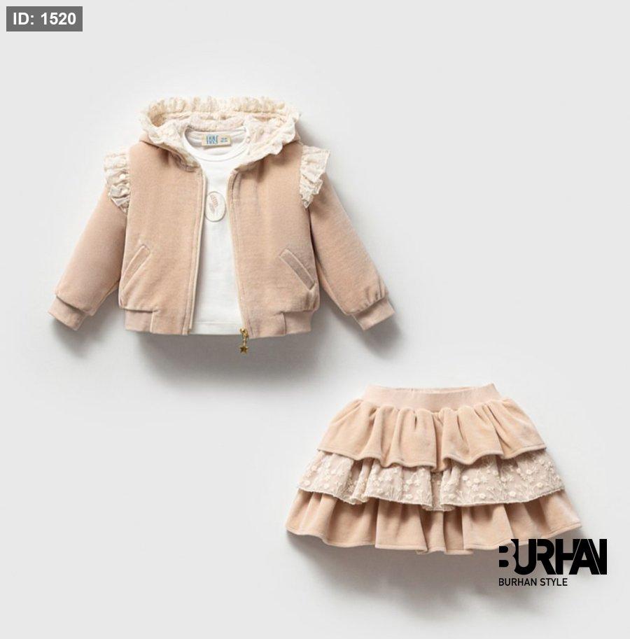 طقم 3 قطع جكيت مع تنورة مخمل وبلوزة قطن